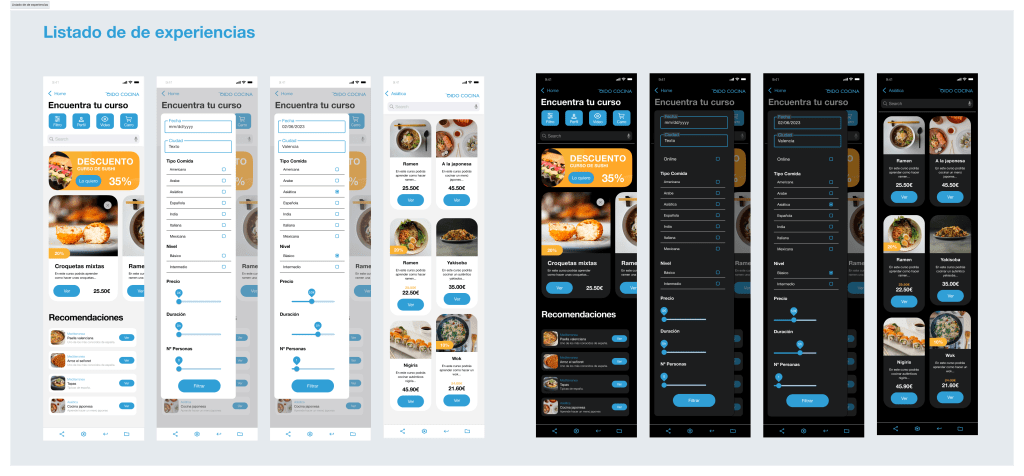 Geolocalización, filtros por tipo de cocina, nivel (principiante/avanzado), precio y fecha, reserva y pago seguro y sistema de reseñas.